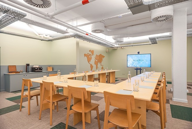 A nossa sala de reuniões com capacidade para até 100 pessoas, é perfeita para encontros de trabalho ou conferências. Adaptamos o espaço conforme o seu gosto e oferecemos opções como churrasco com DJ, brunch ou open cocktail, com menus que se adaptam a todos os grupos.