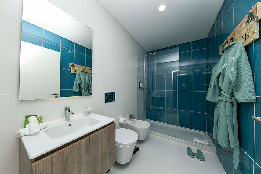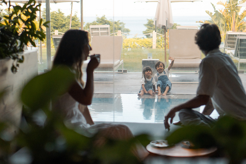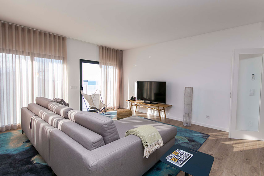 A primeira impressão de quem entra no You and The Sea é a de que entrou num sítio diferente. Uma pequena receção leva-o para um espaço amplo onde está o restaurante Jangada, um espaço com lareira com vista para o mar e para uma piscina que acompanha as estações do ano. No inverno, apenas um vidro a separa de um espaço relvado mesmo virado para o mar. Há também um ginásio bem equipado, para quem quer manter a forma física, mesmo em dias de descanso e um SPA com massagens, banho turco e sauna, para quem quer mesmo descansar. E por falar em descanso, não podemos esquecer, o espaço criado para as crianças libertarem a sua energia. Apesar de ter apartamentos muito espaçosos, vale a pena explorar os espaços comuns.