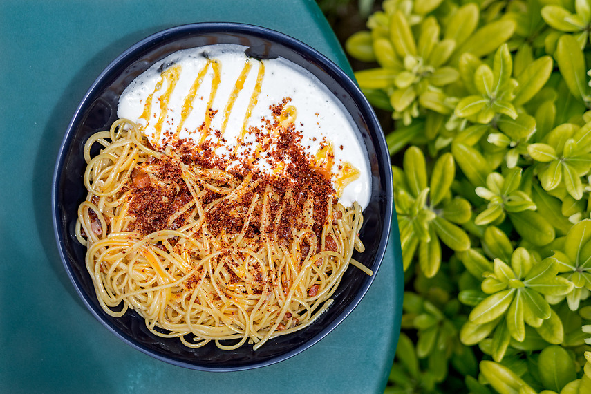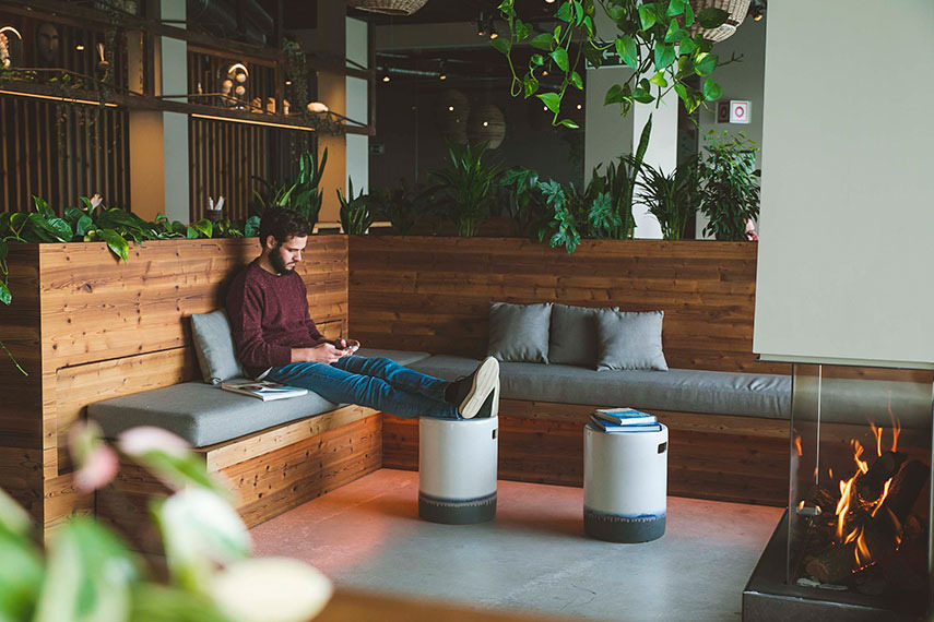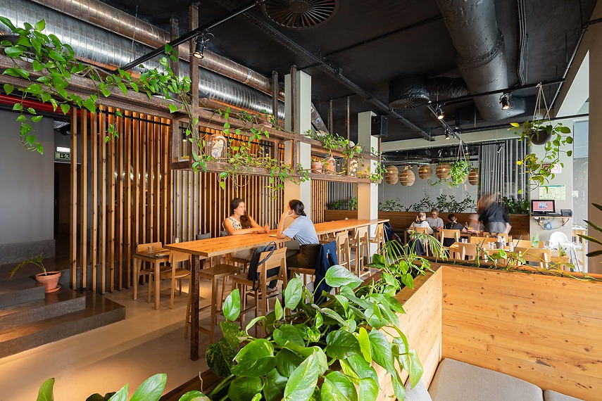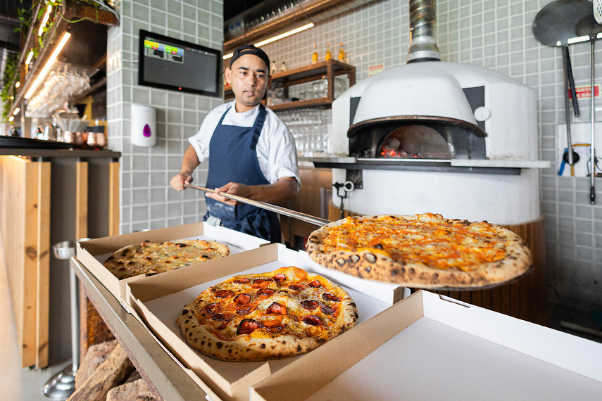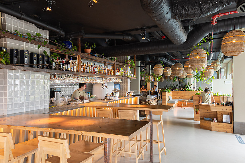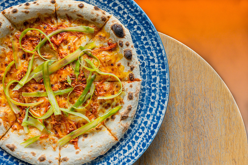 Um ambiente descontraído e acolhedor, do qual sobressaem a imensa vegetação, o forno a lenha de onde saem pizzas estaladiças, a lareira para os dias frios e o recurso a madeiras e ferro antigos reciclados em pormenores decorativos.