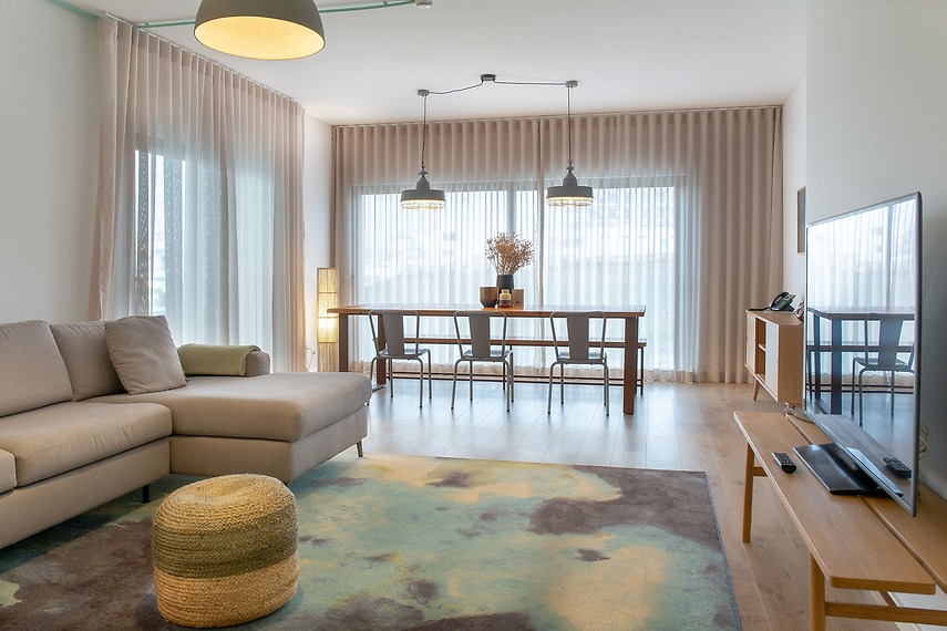 O You and the Sea dispõe de 35 apartamentos com serviço de hotel, com tipologias entre estúdio e o T4, ideal para quem procura uma experiência relaxada à beira-mar, com os confortos da vida citadina. Perfeitos para receber amigos ou família de até oito pessoas. Com sala de estar que permite acomodar no sofá-cama até mais duas pessoas. Cozinhas totalmente equipadas, varanda privativa e mobiliário de exterior.